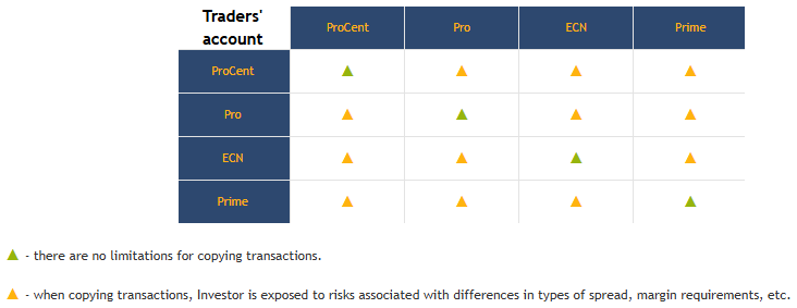 Cross-copying – бұл трейдерлер мен инвесторларға көбірек икемділік беретін пайдалы мүмкіндік, өйткені ол инвесторларға әртүрлі шот түрлерінде (Pro, Prime, ECN немесе Cent) жұмыс істейтін трейдерлерді көшіруге мүмкіндік береді – тек олар бір платформаны (MT4 немесе MT5) қолданса болды.