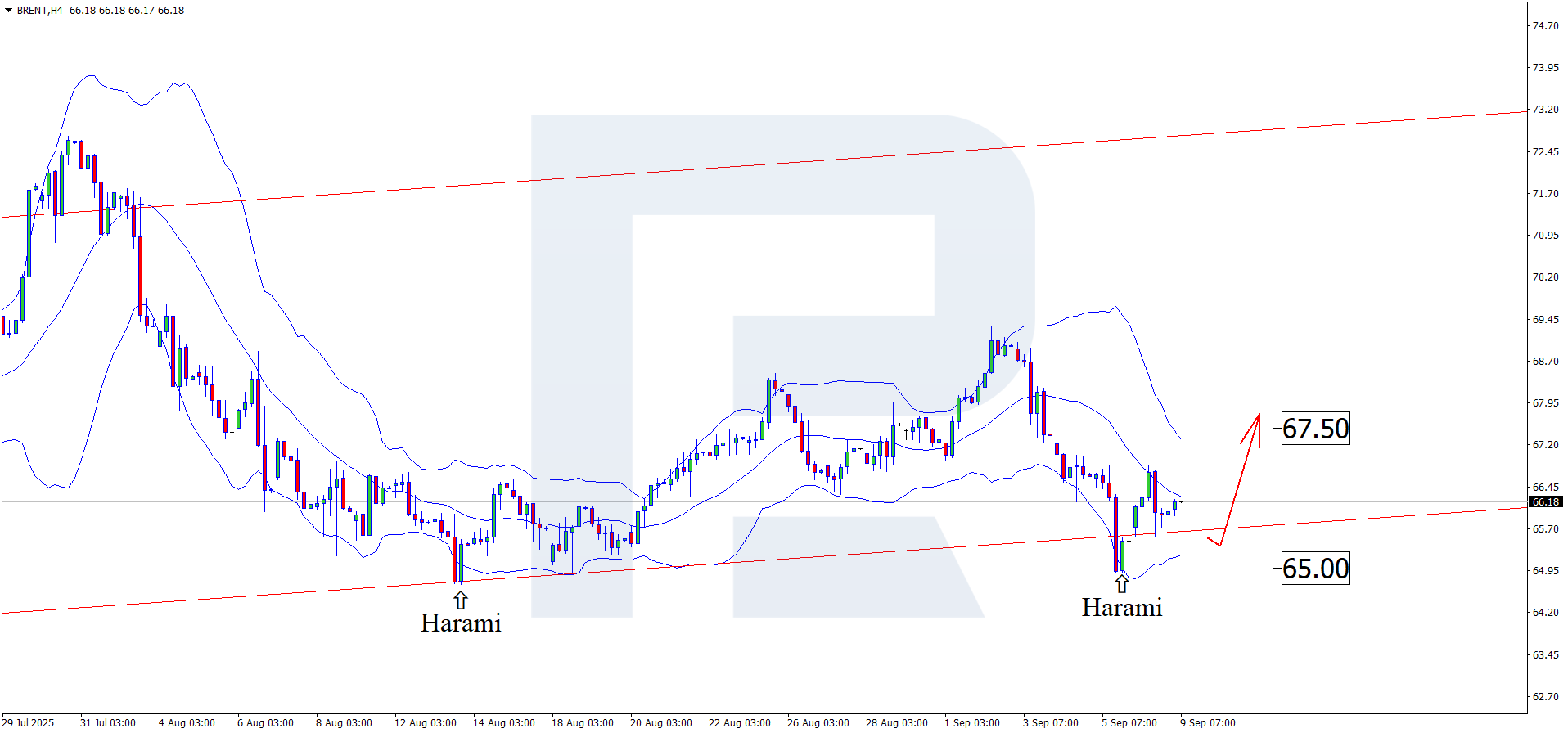 2025 жылғы 9 қыркүйекке арналған Brent бағасының болжамы жоғарыдағы мақсатты 67.50 АҚШ долларында көреді. Қарсылық деңгейінен жоғары бұзылу одан әрі күшті өсуге жол ашады.