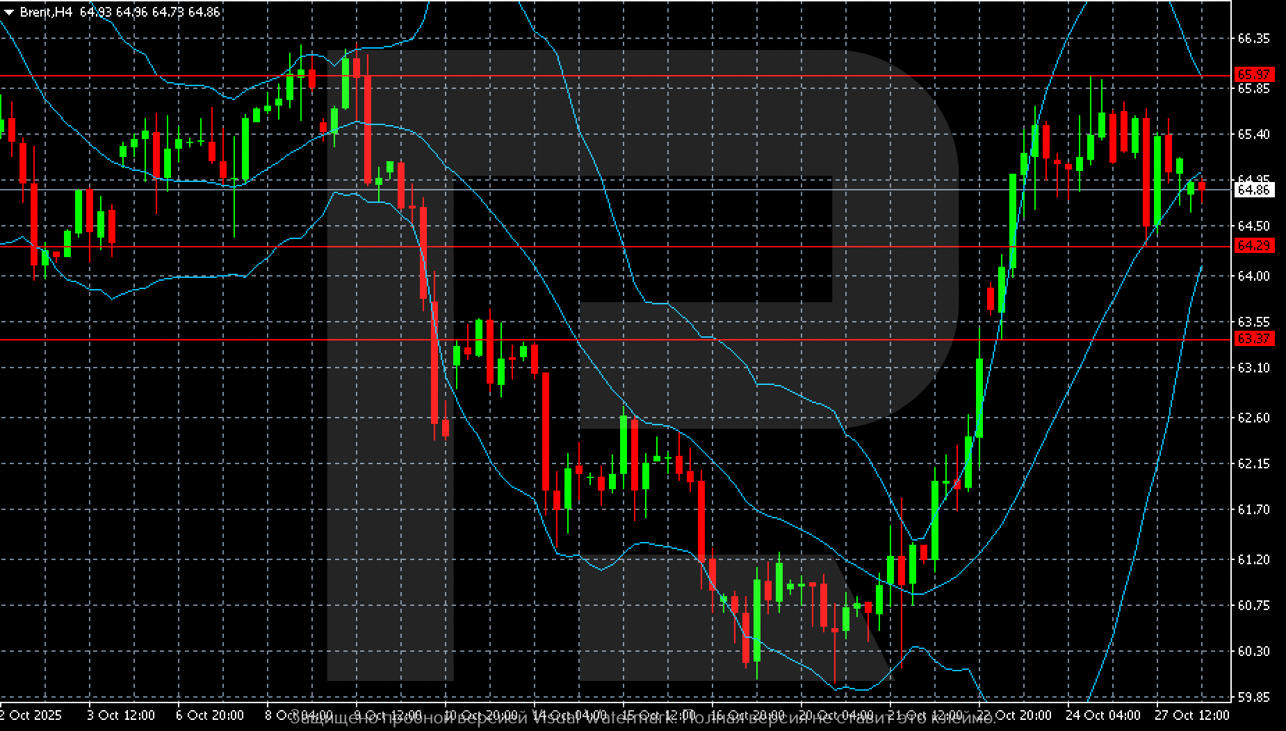 H4 графигінде Brent қазан айының басындағы күрт жоғалтулардан кейін қалпына келу үлгісін көрсетіп отыр. Айлық минимумдар шамамен 60 АҚШ долларында тіркеліп, 25 қазанға қарай баға 65 доллардан жоғары көтерілді.