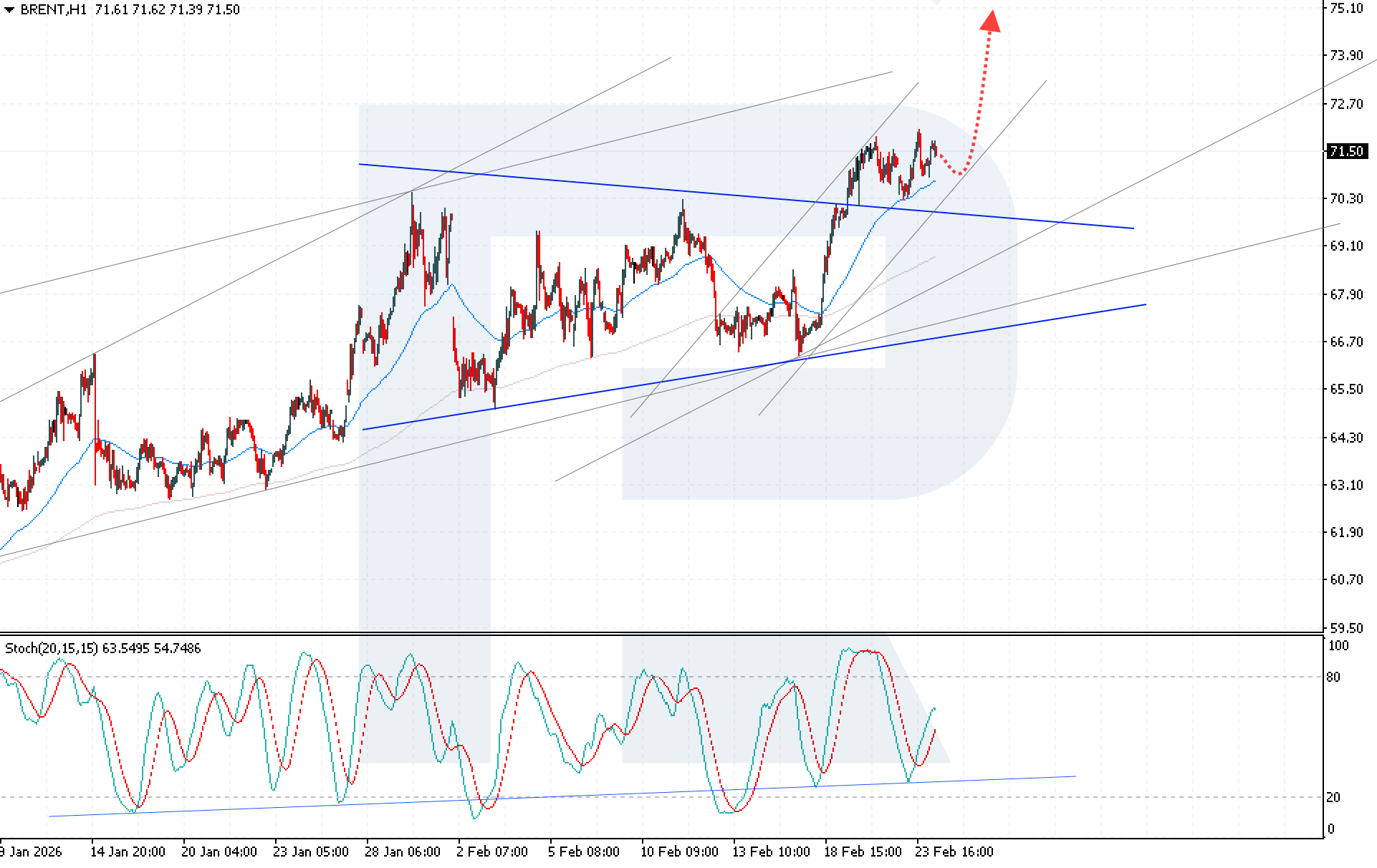 Brent маркалы мұнай бағасы тұрақты техникалық күш пен геосаяси шиеленістің күшеюі аясында өсуді жалғастыруда, қазіргі уақытта 71.50 USD деңгейінде саудалануда. Толығырақ 2026 жылғы 24 ақпан күнгі талдауымыздан біліңіз.