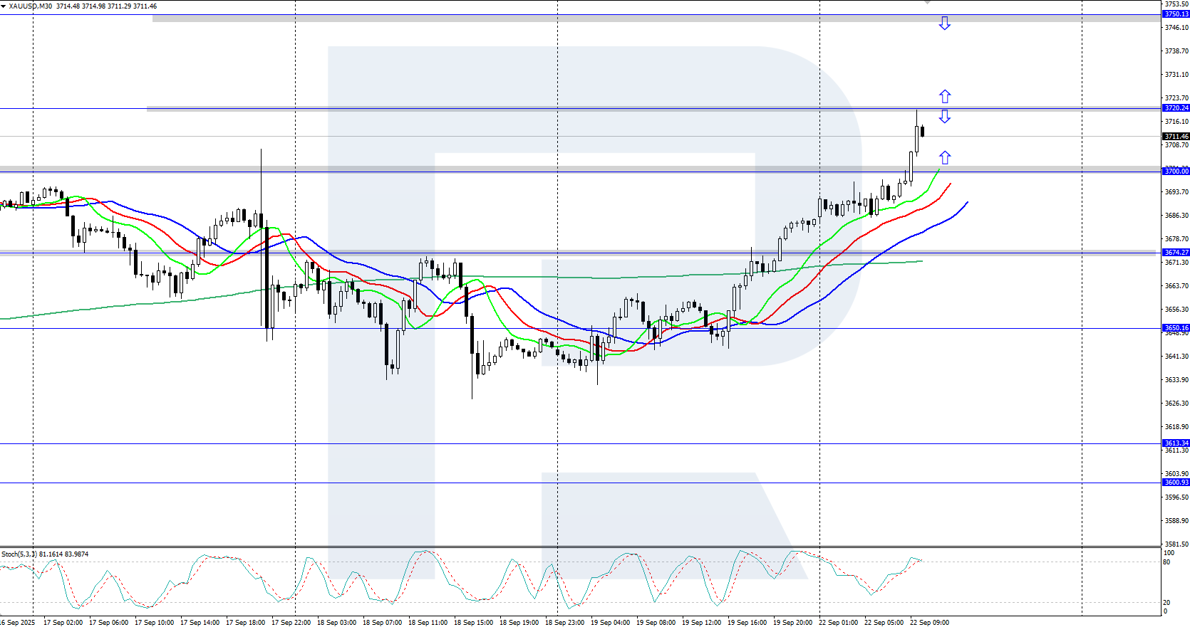 XAUUSD бағалары нығаюын жалғастырып, тарихи максимумнан жоғары көтеріліп, 3,720 АҚШ доллары аймағына жетті. Бұл әлсіреген АҚШ доллары мен ФРЖ-ның мөлшерлеме төмендетуінен кейін орын алды. Толығырақ 2025 жылғы 22 қыркүйек арналған талдауымыздан біліңіз.