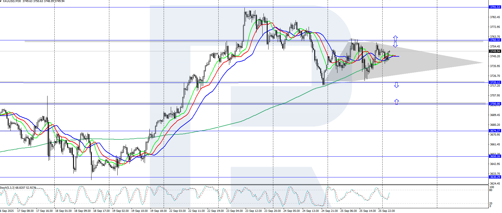XAUUSD котировкалары 3,791 АҚШ долларындағы тарихи максимумнан АҚШ-тың күшті экономикалық деректері аясында түзетілді. ІЖӨ көрсеткіші қайта қаралып, 2-тоқсандағы өсім 3.8% болды, ал ұзақ мерзімді тауарларға тапсырыс 2.9%-ға артты.