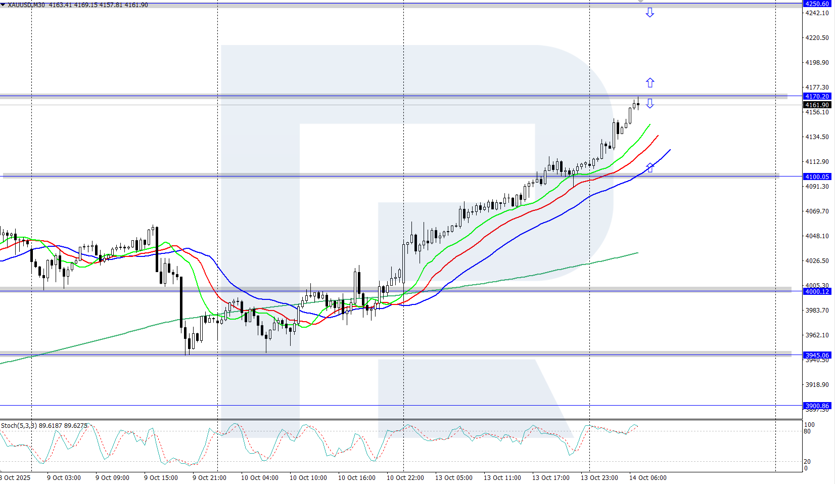 XAUUSD бағалары күшеюін жалғастырып, АҚШ долларының әлсіреуі аясында шамамен 4,170 АҚШ долларында жаңа тарихи максимум орнатты. 2025 жылғы 14 қазан күнгі талдауымыздан толығырақ біліңіз.