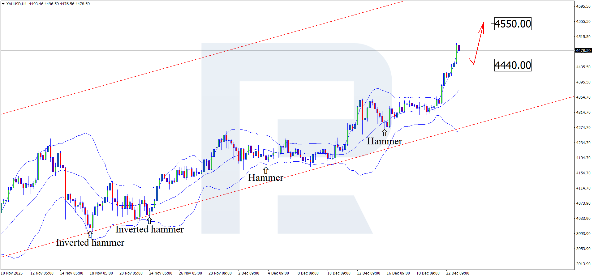 Сонымен қатар, бүгінгі XAUUSD техникалық көрінісі балама сценарийді де қарастырады — яғни одан әрі өсу алдында 4,440 USD деңгейіне қарай түзету қозғалысы болуы ықтимал.