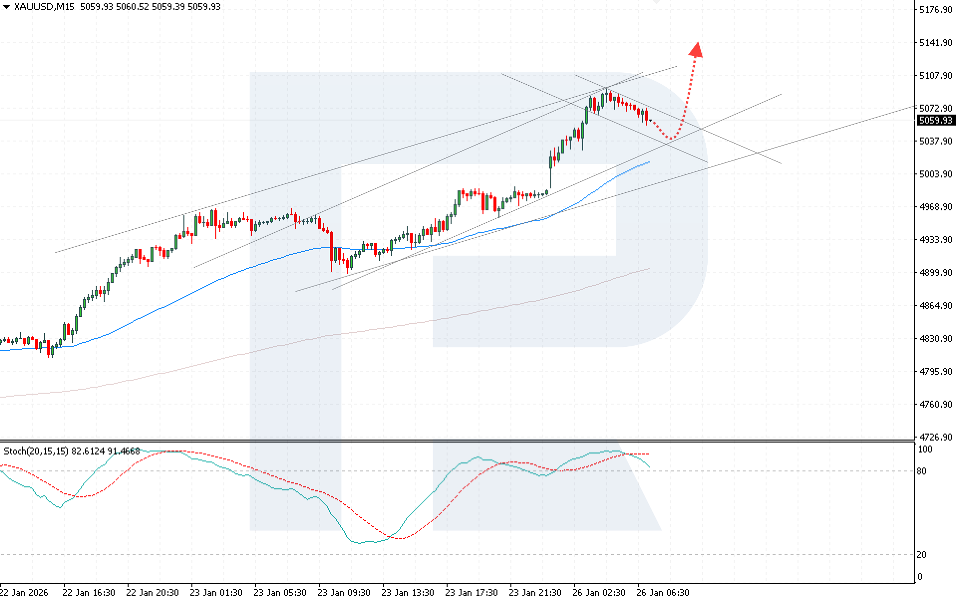 Өсуші сценарийдің негізгі шарты — XAUUSD котировкаларының 5,080 USD деңгейінен жоғары бекітілуі. Мұндай сигнал төмендеуші түзетуші арнаның жоғарғы шекарасынан жоғары бұзылуды көрсетіп, мақсатты деңгейге жету ықтималдығын айтарлықтай арттырады.