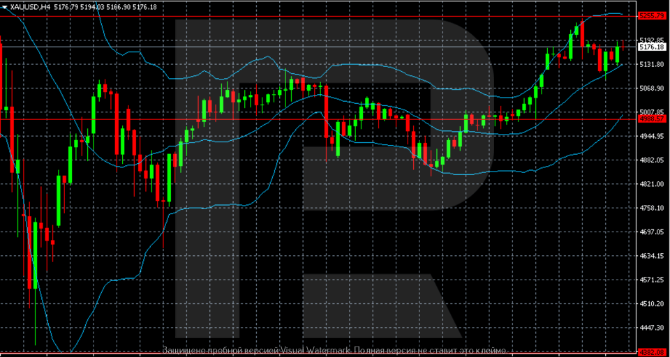 H4 графигінде алтын (XAUUSD) 4,900–4,950 аймағынан серпіліп, тұрақты өсу импульсін қалыптастырды. Ралли жеделдеп, бағаны 5,255 қарсылық деңгейіне – ағымдағы жергілікті максимумға – дейін жеткізді.