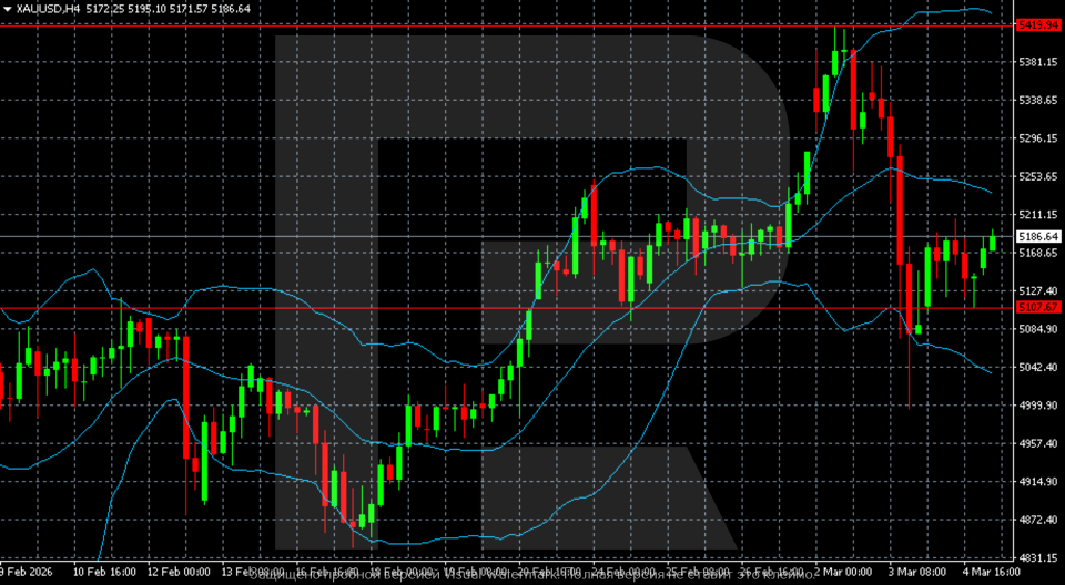 Алтын (XAUUSD) бағасы 5,186 USD деңгейіне дейін өсті, себебі нарық қорғаныс активтерін іздеуді жалғастыруда. 2026 жылғы 5 наурыз арналған талдауымыздан толығырақ біліңіз.