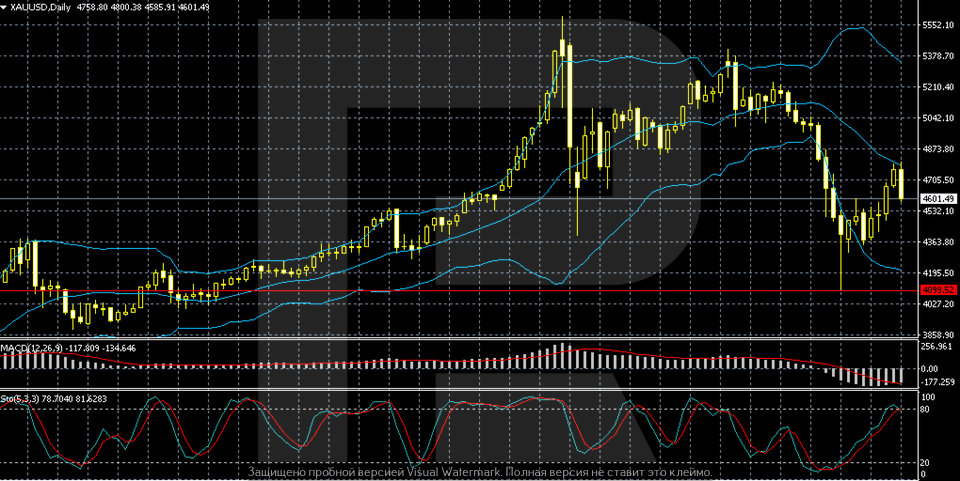 Техникалық тұрғыдан алтын төмендеу түзетуіне өтті. 5,500 деңгейіне жақын максимумдардан кейін бағалар 4,200–4,300 деңгейіне дейін төмендеп, 4,600 деңгейіне дейін қалпына келді. Бағалар Bollinger Bands орта сызығынан төмен қалып, сатушылар қысымын көрсетеді. MACD теріс аймақта, ал Stochastic Oscillator қысқа мерзімді қалпына келуді көрсетеді. Диапазон ішінде қозғалыс күтіледі: қолдау — 4,300–4,200, қарсылық — 4,800–5,000.