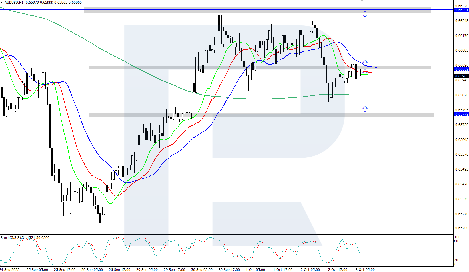 AUDUSD бағамы АҚШ үкіметін қаржыландыруға қатысты белгісіздік жағдайында 0.6600 деңгейі маңында орнықты. 2025 жылғы 3 қазан күнгі талдауымыздан толығырақ біліңіз.