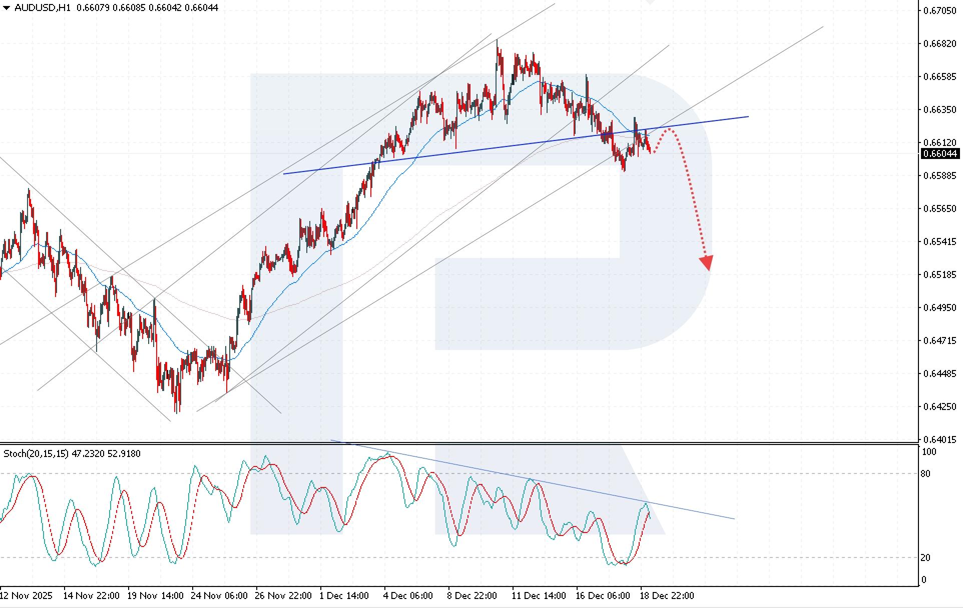 Инвесторлардың RBA-ның келесі саясаттық қадамдарына қатысты белгісіздігі аясында AUDUSD бағамы қайтадан төмендеуді бастады. Ағымдағы котировка — 0.6604. Толығырақ — 2025 жылғы 19 желтоқсан арналған талдауда.