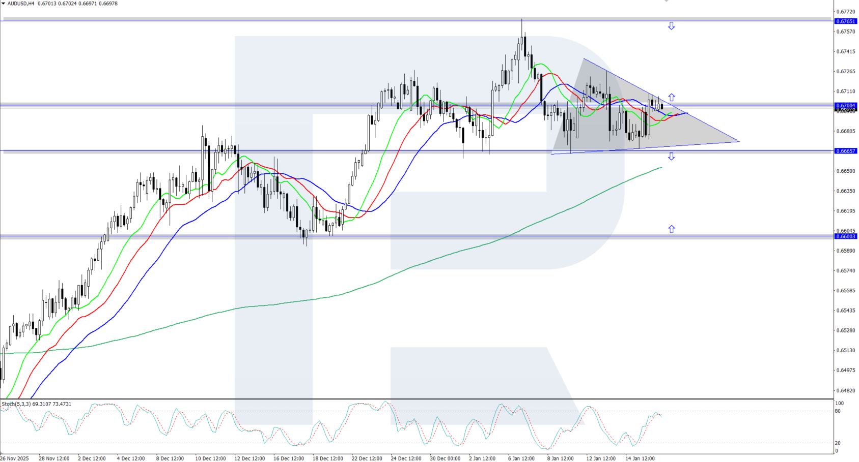 AUDUSD бағамы геосаяси шиеленістің артуы аясында 0.6765 жылдық максимумына жеткеннен кейін қалыпты түзетуден өтуде. Толығырақ — 2026 жылғы 16 қаңтар күнгі талдауымызда.