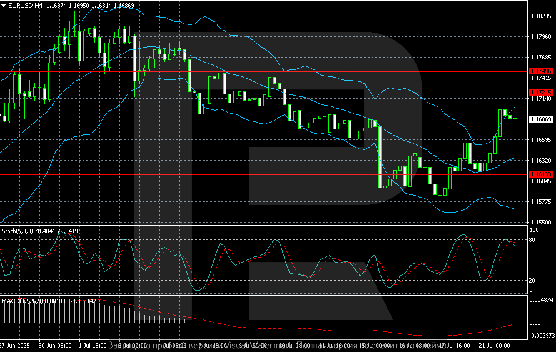 EURUSD жұбы 1.1688 деңгейіне қарай көтерілуде, себебі саудадағы белгісіздік пен ФРЖ мөлшерлемесі бойынша күтулер АҚШ долларына қысым түсіруде. 2025 жылғы 22 шілде күнгі толық талдауды төменнен табуға болады.