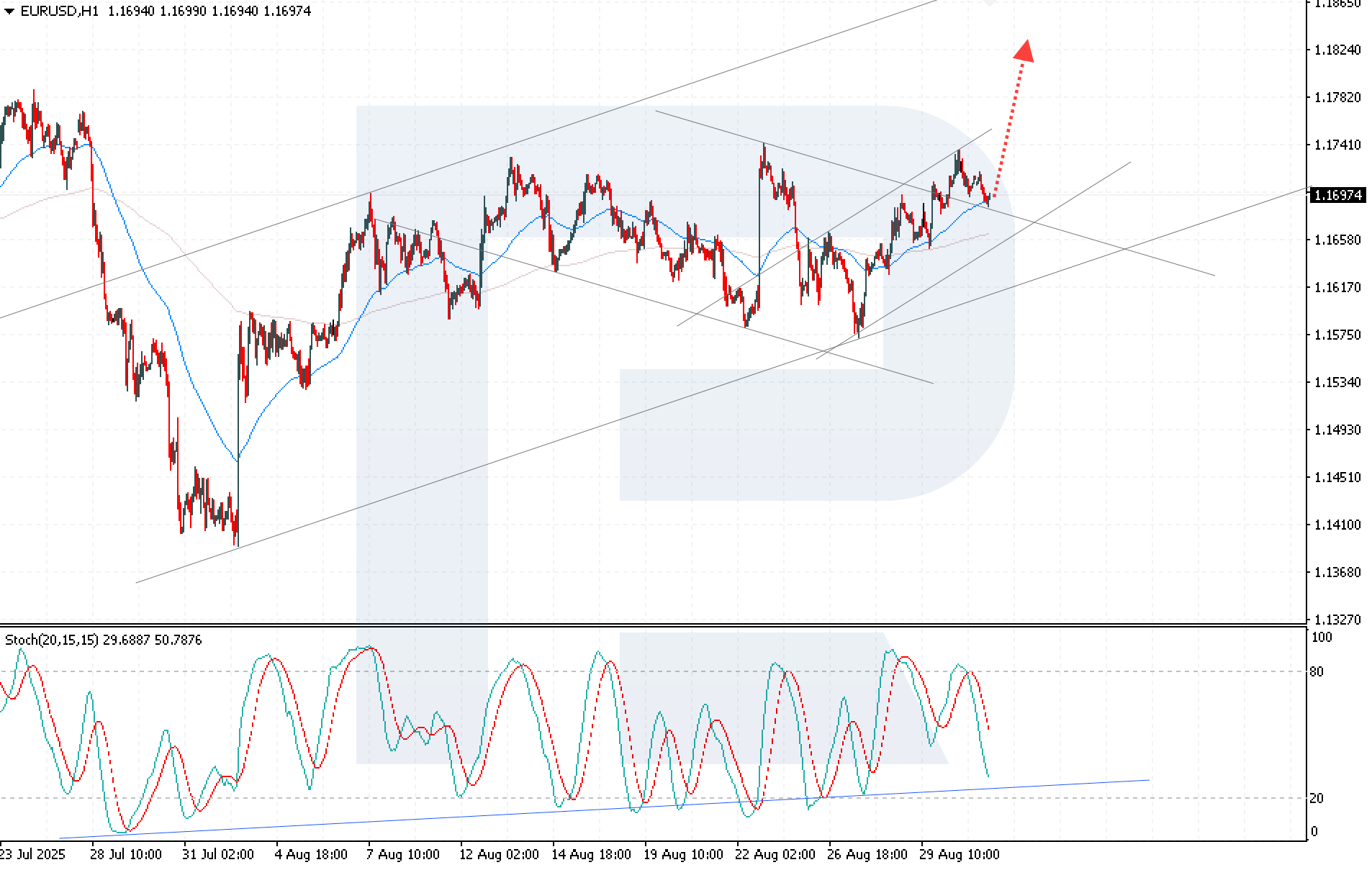 Stochastic Oscillator сатып алу белгісін беріп отыр: оның сызықтары артық сатылу аймағынан жоғары қарай бұрылып, қолдау сызығына жақындап келеді. 1.1745 негізгі қарсылық деңгейінен жоғары бұзылу бұқалық сценарийді одан әрі растап, өсу ықтималдығын айтарлықтай арттырады.