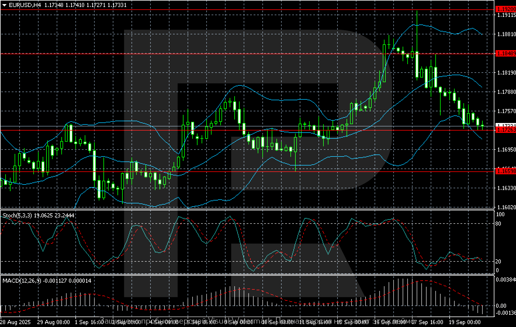 EURUSD жұбы төмендеуде, өйткені нарық ФРЖ өкілдерінің сигналдарын күтуде. EURUSD болжамы бүгін, 22 қыркүйек 2025 ж., алдымен 1.1725, кейін 1.1660 деңгейлеріне қарай төмендеуді болжайды.