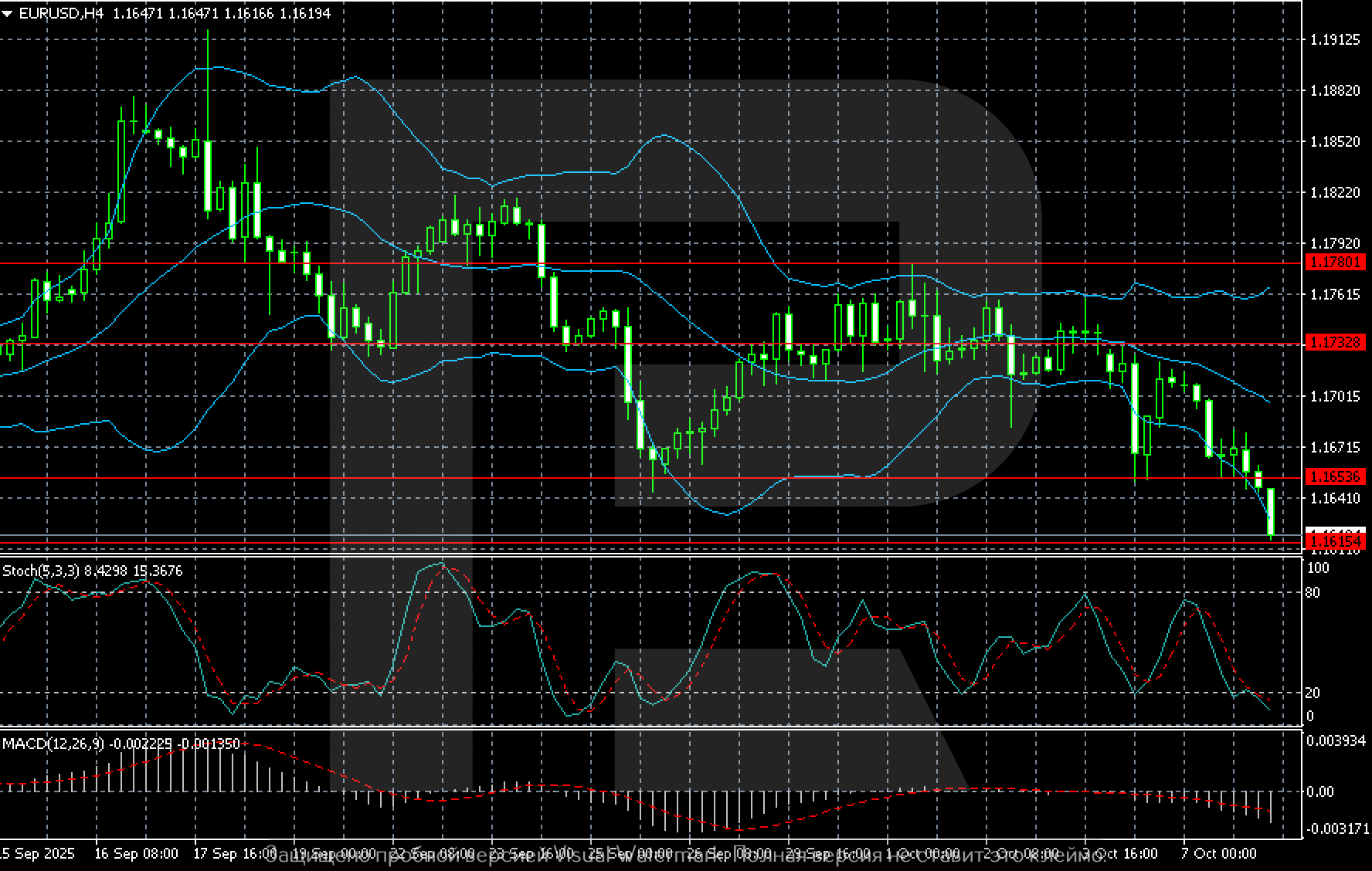 Сәрсенбі күні EURUSD бағамы 1.1615 деңгейіне дейін төмендеп, АҚШ үкіметінің жұмысын тоқтатуының экономикалық салдарына қатысты нарықтағы алаңдаушылық күшейді. Федералдық агенттіктер екінші апта бойы жабық тұр, ал саяси партиялар арасында келісімге келудің нақты белгілері жоқ. Бұл белгісіздік негізгі макроэкономикалық деректердің жариялануын кешіктіріп, саясаткерлерге келісімге келу қысымын арттырып отыр.
