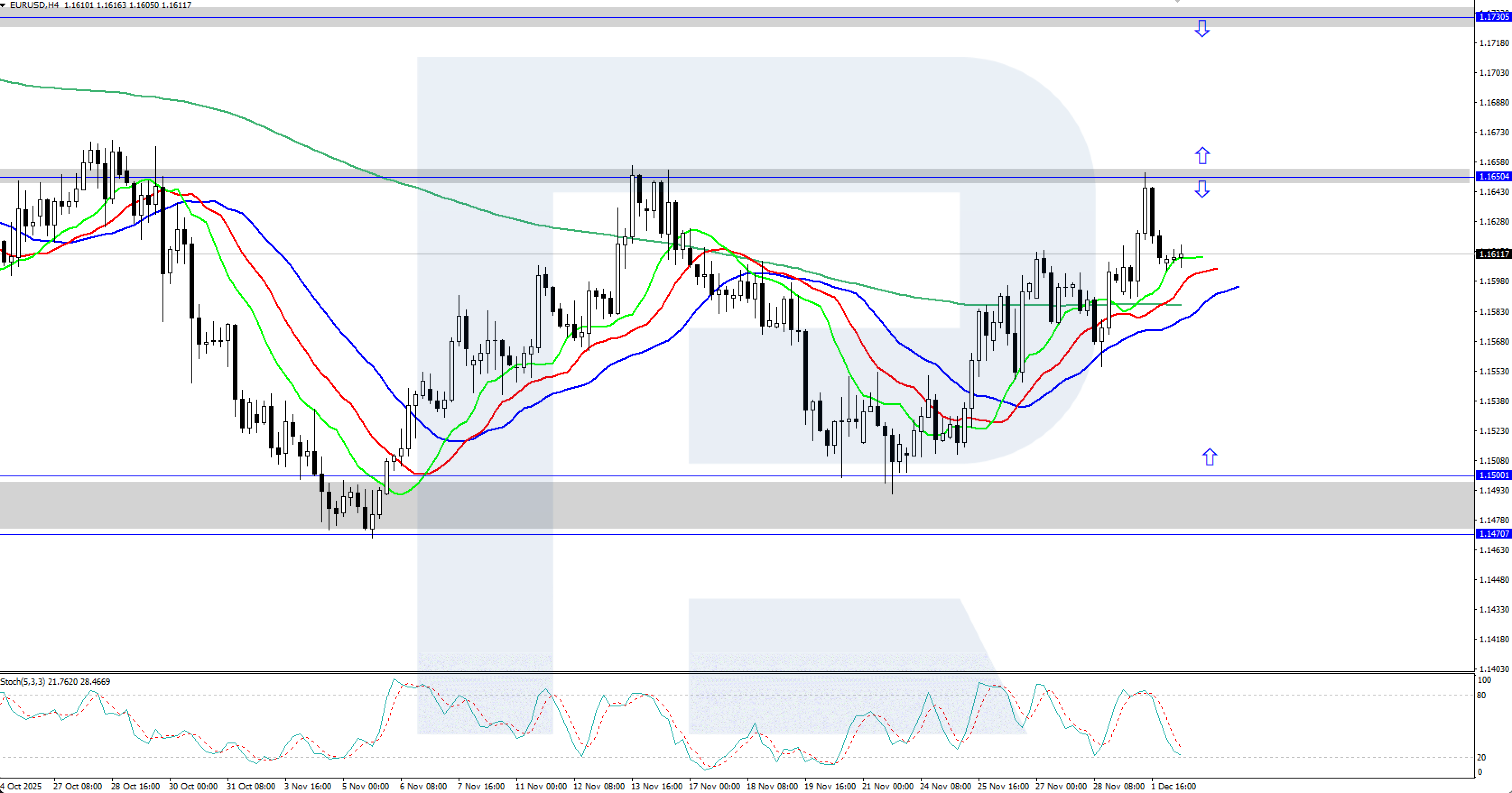 EURUSD бағамы 1.1600 деңгейінен жоғары саудалануда. Нарық бүгін еуроаймақтың еңбек нарығы мен инфляция (ТБИ) деректерін күтуде. Толығырақ 2025 жылғы 2 желтоқсан күнгі талдаудан қараңыз.