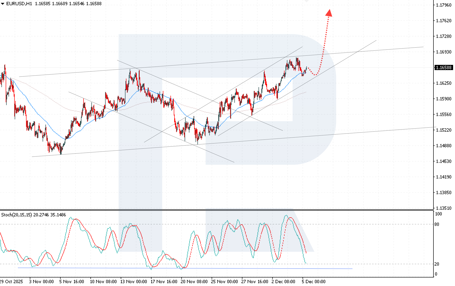 Сонымен қатар, Challenger Gray & Christmas жариялаған мәліметтер АҚШ компаниялары қараша айында 71 мың жұмыстан босатуды хабарлағанын көрсетті — бұл 2022 жылдан бергі ең жоғары қараша көрсеткіші. Бұл АҚШ еңбек нарығына қысымның күшейгенін білдіреді. Осындай факторлардың аясында бүгінгі EURUSD болжамы бұқалық болып қала береді.