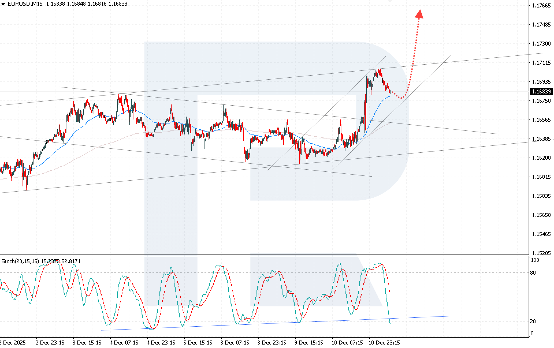 EURUSD ФРЖ шешімі мен Джером Пауэллдың «көгершінше» риторикасына байланысты түзетілуде. Ағымдағы баға – 1.1683. 2025 жылғы 11 желтоқсан арналған талдауда толығырақ қарастырамыз.