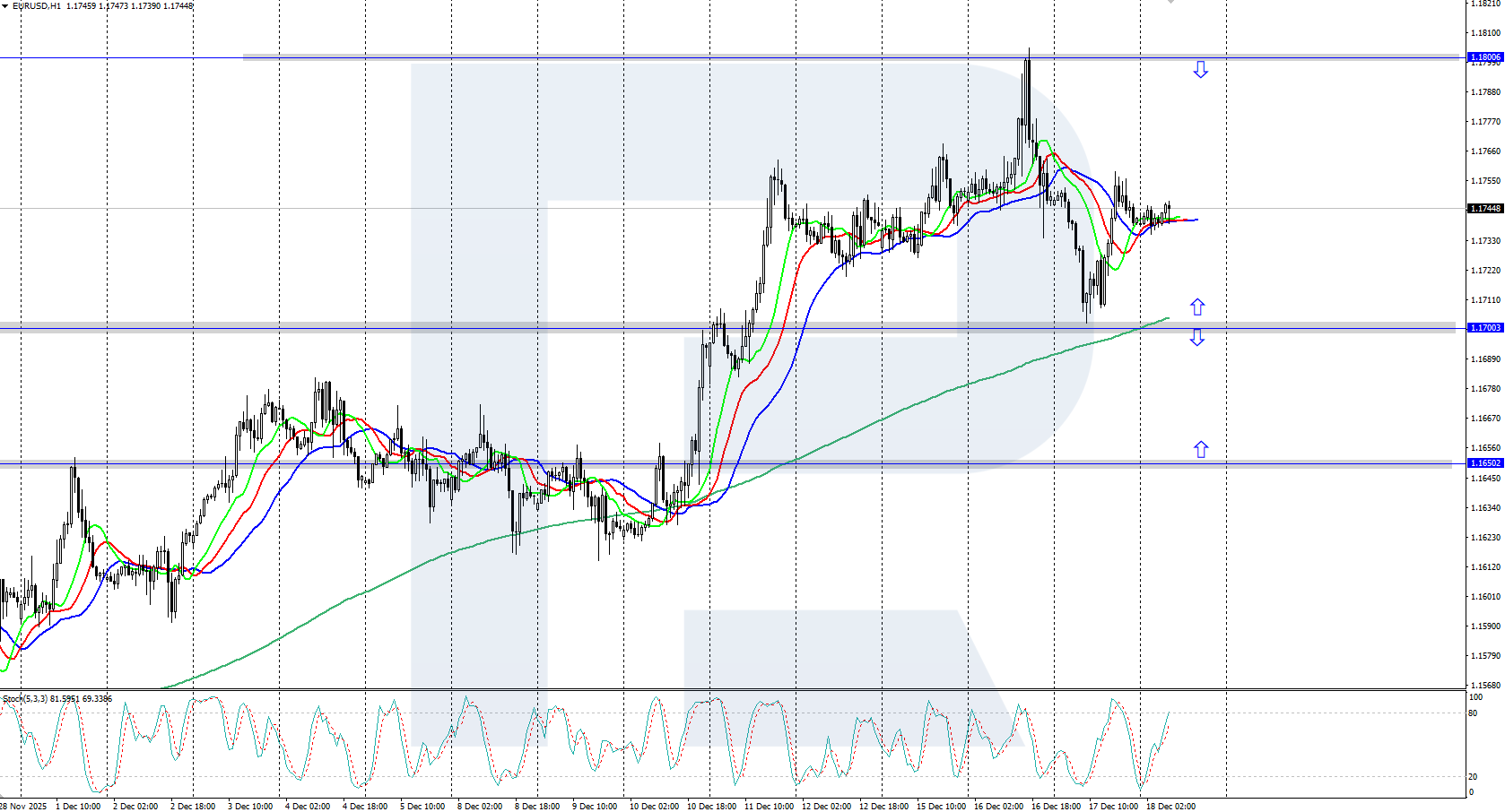 EURUSD бағамы 1.1700 қолдау деңгейінен жоғары серпілгеннен кейін қалыпты түрде өсуде. Бүгін нарық Еуропалық орталық банктің пайыздық мөлшерлеме жөніндегі шешімін күтуде. Толығырақ — 2025 жылғы 18 желтоқсан арналған талдауда.