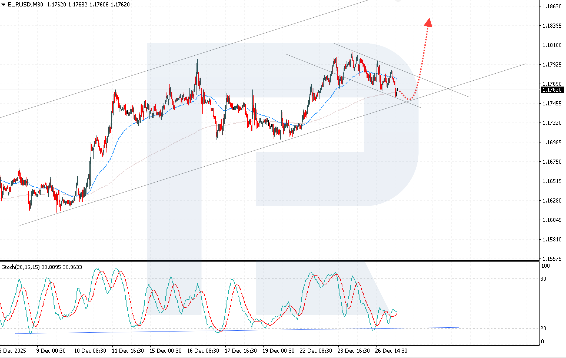EURUSD бағамы Федералды резерв жүйесінің ақша-несие саясатына қатысты күтулер аясында түзетуші төмендеу шегінде дамуда. Ағымдағы котировка — 1.1762. Толығырақ — 2025 жылғы 29 желтоқсан күніне арналған талдауымызда.