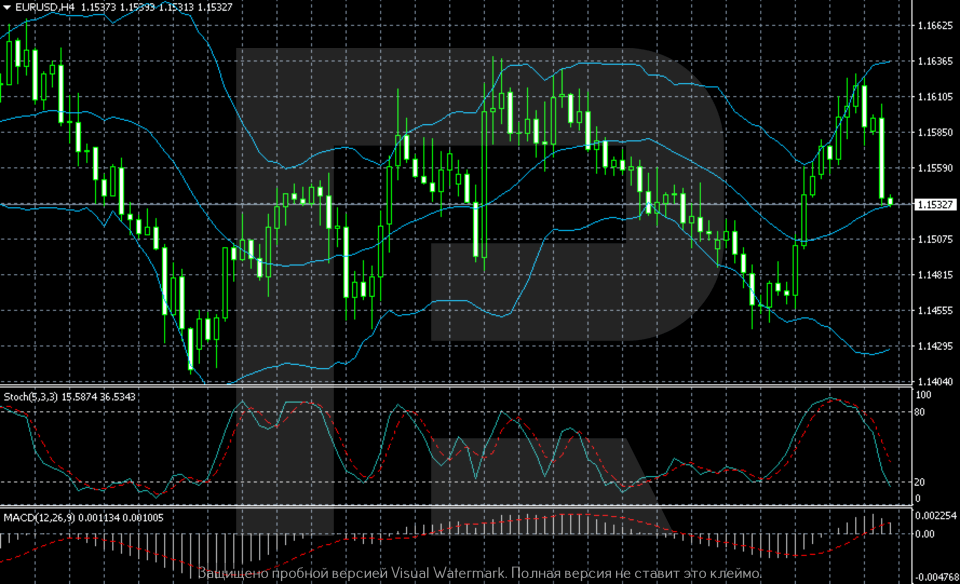 H4 графигінде EURUSD жұбы жоғары құбылмалылықпен кең бүйірлік диапазонда қозғалып жатыр. Баға 1.1400–1.1450 аймағына дейін төмендегеннен кейін серпіліп, жоғарырақ минимумдар қатарын қалыптастырды, бірақ өсім 1.1600–1.1630 аймағында шектеліп отыр. Қазіргі таңда баға шамамен 1.1530 деңгейінде, диапазонның ортасына жақын орналасқан, бұл айқын трендтің жоқтығын және сатып алушылар мен сатушылар арасындағы тепе-теңдікті білдіреді.