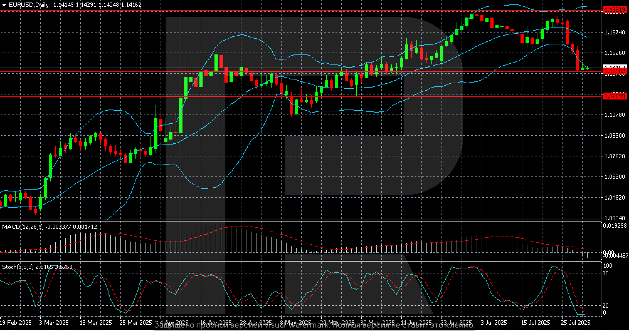 Нарықтар АҚШ-тың қатаң сауда саясатын бағалауды жалғастыруда. Дональд Трамп 10% мөлшерінде базалық тариф енгізгенін және АҚШ-пен сауда келісімі жоқ елдерге 41%-ға дейін жауаптық баж салығы енгізілгенін растады. Бұл долларды қауіпсіз актив ретінде қолдады. USD-ға қосымша қолдау — мықты PCE инфляция деректерінен және түзетілген мөлшерлеме болжамынан туындап отыр: енді нарық қыркүйектегі мөлшерлеме төмендеуін күтпейді.