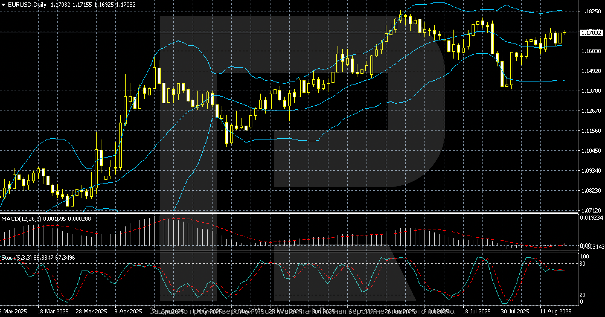 EURUSD жұбы шамамен 1.1702 деңгейінде саудалануда, тамыздағы жергілікті максимумдарға жақын. АҚШ-тың PPI деректері шыққаннан кейін жұп қолдау тапты: индекс шілдеде 0.9% m/m және 3.3% y/y өсіп, соңғы үш жылдағы ең жоғары айлық өсімді көрсетті. Бұл деректер ФРЖ тарапынан агрессивті төмендету күтілімін азайтты, бірақ қыркүйектегі жұмсарту сценарийін жоққа шығарған жоқ.