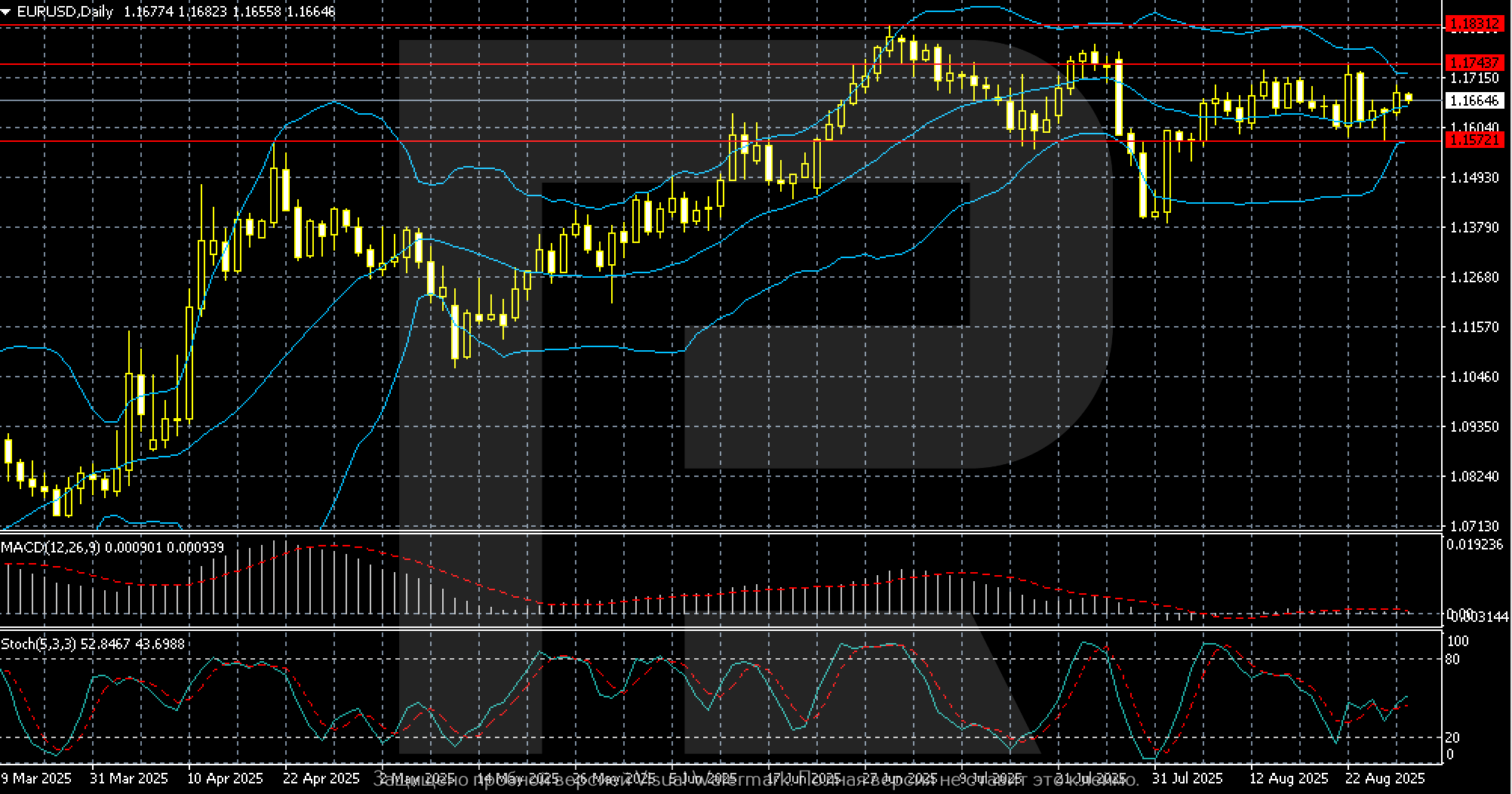 Күндік графикте EURUSD соңғы апталардағы диапазонда қалды, 1.1570–1.1740 аралығында саудалануда.