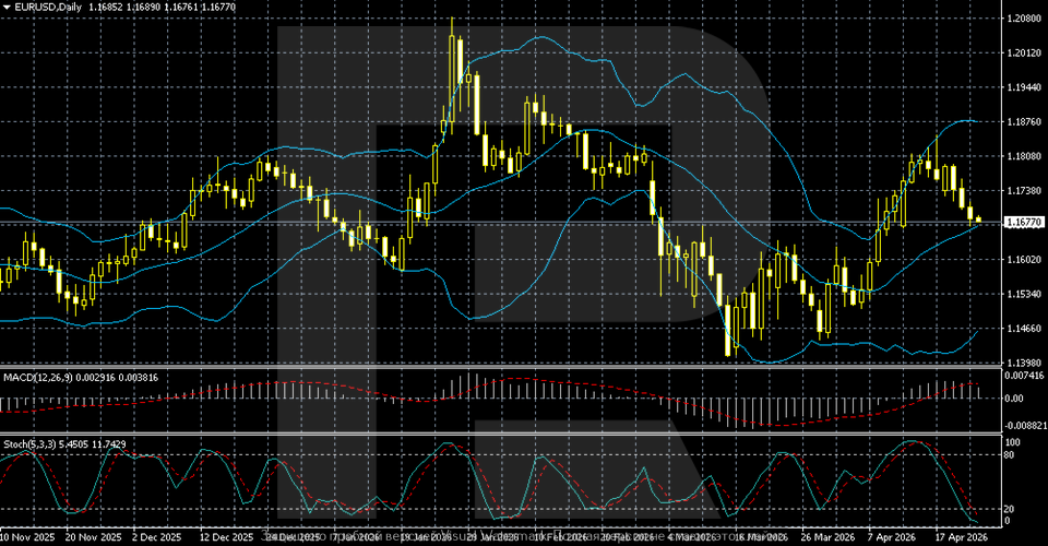 EURUSD жұбы 27 сәуір – 1 мамыр аптасын шамамен 1.1677 деңгейінде бастайды, үш аптадағы алғашқы түзетуден кейін төмендеді. АҚШ доллары АҚШ–Иран келіссөздерінде ілгерілеудің болмауы және қорғаныс активтеріне сұраныстың артуы аясында күшейді.