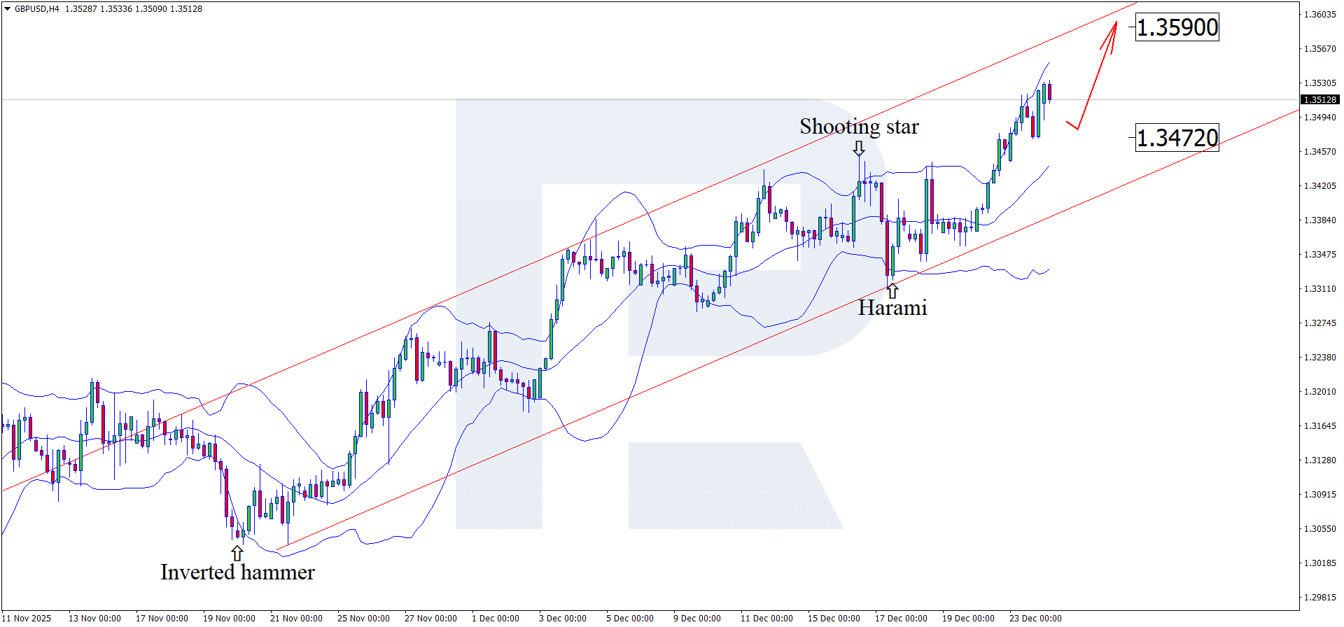 2025 жылғы 24 желтоқсанға арналған болжамда балама сценарий де қарастырылады: өсім қайта жалғасқанға дейін 1.3472 деңгейіне қарай түзетуші кері шегіну болуы мүмкін.