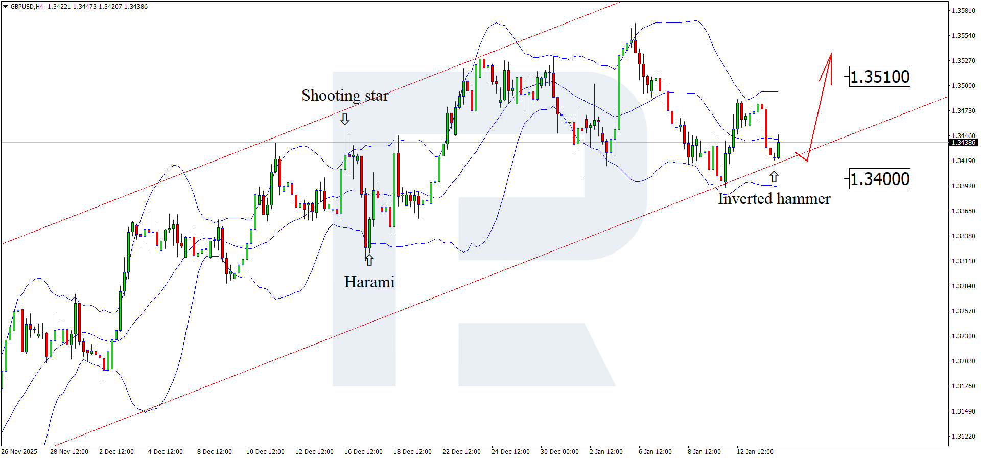 Сонымен қатар бүгінгі GBPUSD болжамы балама сценарийді де қарастырады: өсім жалғасқанға дейін бағаның 1.3400 деңгейіне дейін түзетілуі мүмкін.