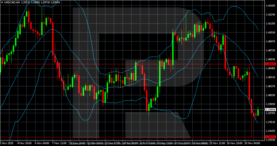 USDCAD жұбы әлсіз көрініп тұр. 1 желтоқсан 2025 күнгі USDCAD болжамы бағаның 1.3937 деңгейіне қайта түсу ықтималдығын көрсетеді.