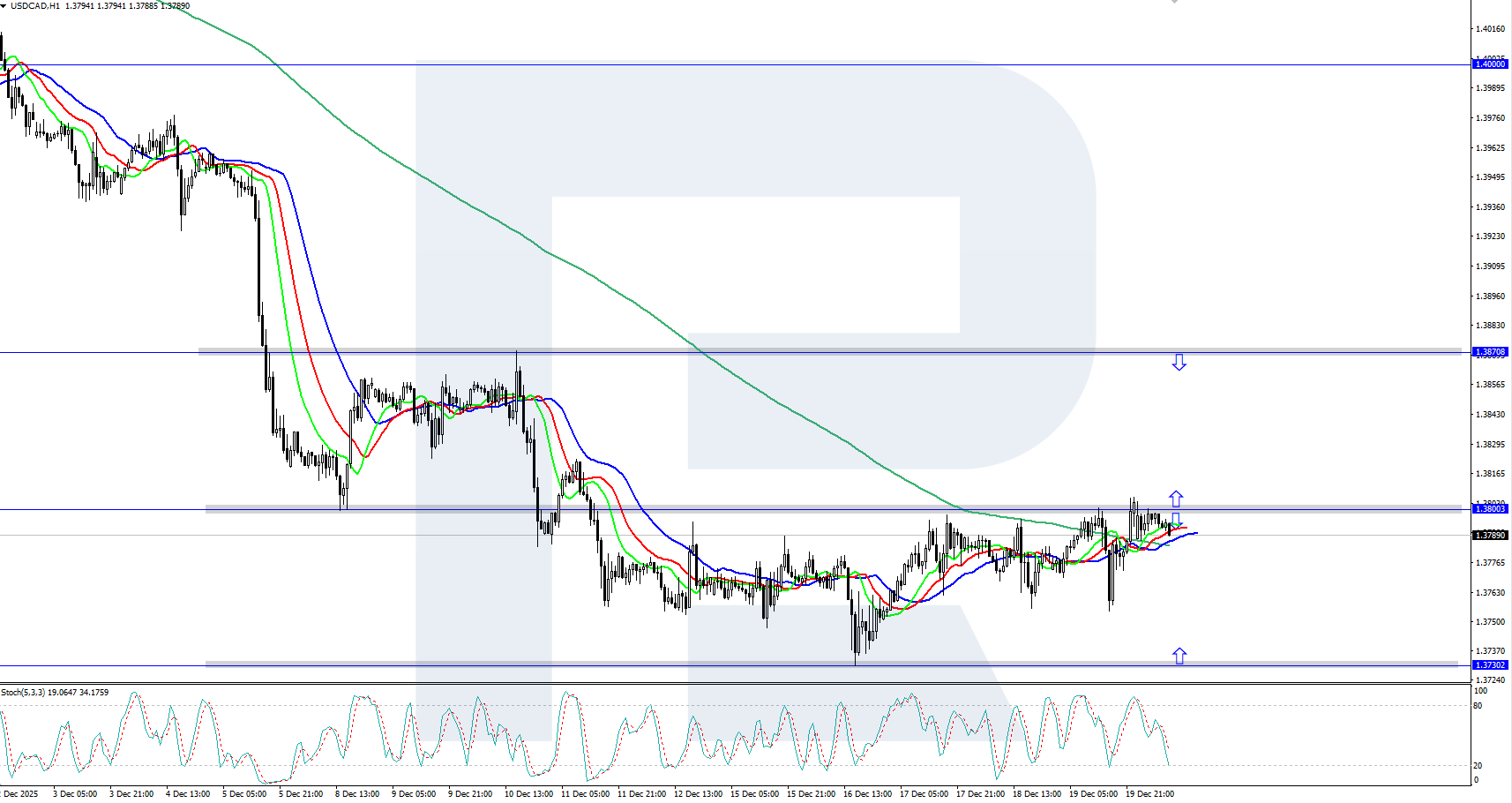 USDCAD төмендеуін тоқтатып, 1.3730 аймағында сатып алушылардың қолдауын алғаннан кейін жоғары қарай бұрылуға әрекет жасап жатыр. Толығырақ — 2025 жылғы 22 желтоқсан арналған талдауымызда.