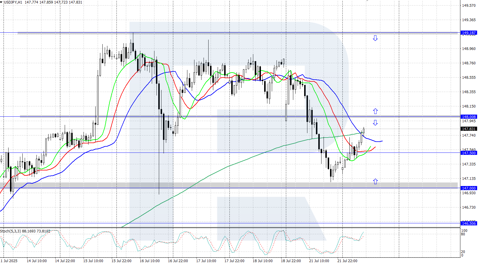 Жапониядағы сайлаудан кейін USDJPY жұбы 147.00 қолдау деңгейіне дейін төмендеді. Токио мен Вашингтон арасындағы сауда тарифтері бойынша келіссөздер жалғасуда, ал жаңа шаралар 1 тамызда күшіне енуі мүмкін.