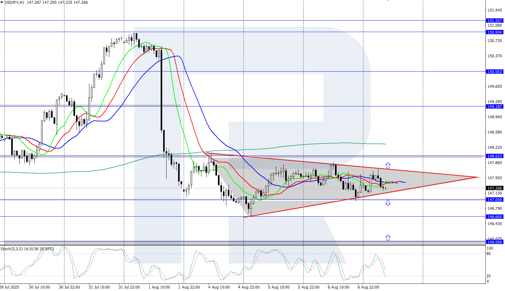 USDJPY жұбы төмендеуде. Жалпы доллар әлсіздігі мен Жапониядан келген жағымды макродеректер аясында баға 147.00 аймағына дейін құлдырады. 2025 жылғы 7 тамыз күнгі толық талдауды төменнен оқыңыз.
