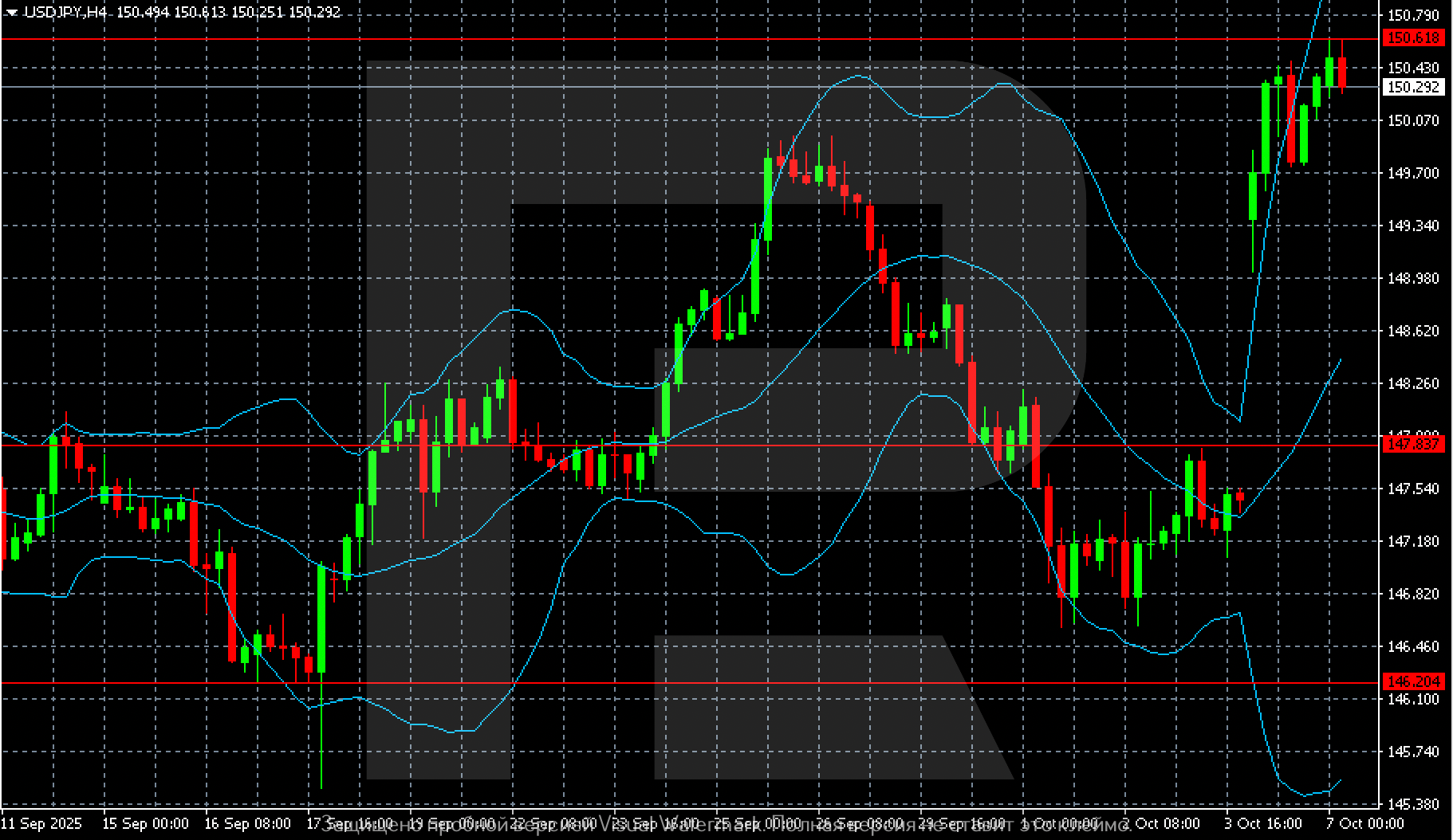 USDJPY жұбы АҚШ үкіметінің жұмысын тоқтатуы мен Жапониядағы ішкі саяси оқиғалардың қолдауымен нығайды. 2025 жылғы 7 қазанға USDJPY болжамы 150.80 және 151.30 бағытында өсу қозғалысының жалғасуын көрсетеді.