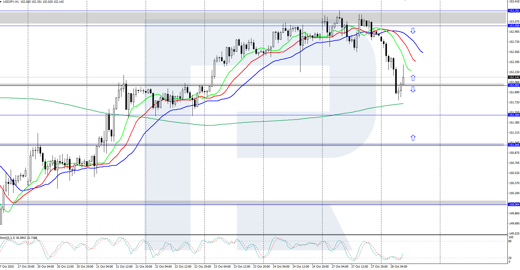 USDJPY жұбы төмен саудалануда, себебі АҚШ пен Жапония арасындағы жаңа сауда келісімінің қол қойылуы және Федералдық резервтің мөлшерлемені төмендету жөніндегі күтілімдерінің артуы долларды әлсіретіп отыр. Толығырақ — 2025 жылғы 28 қазан күнгі талдауда.