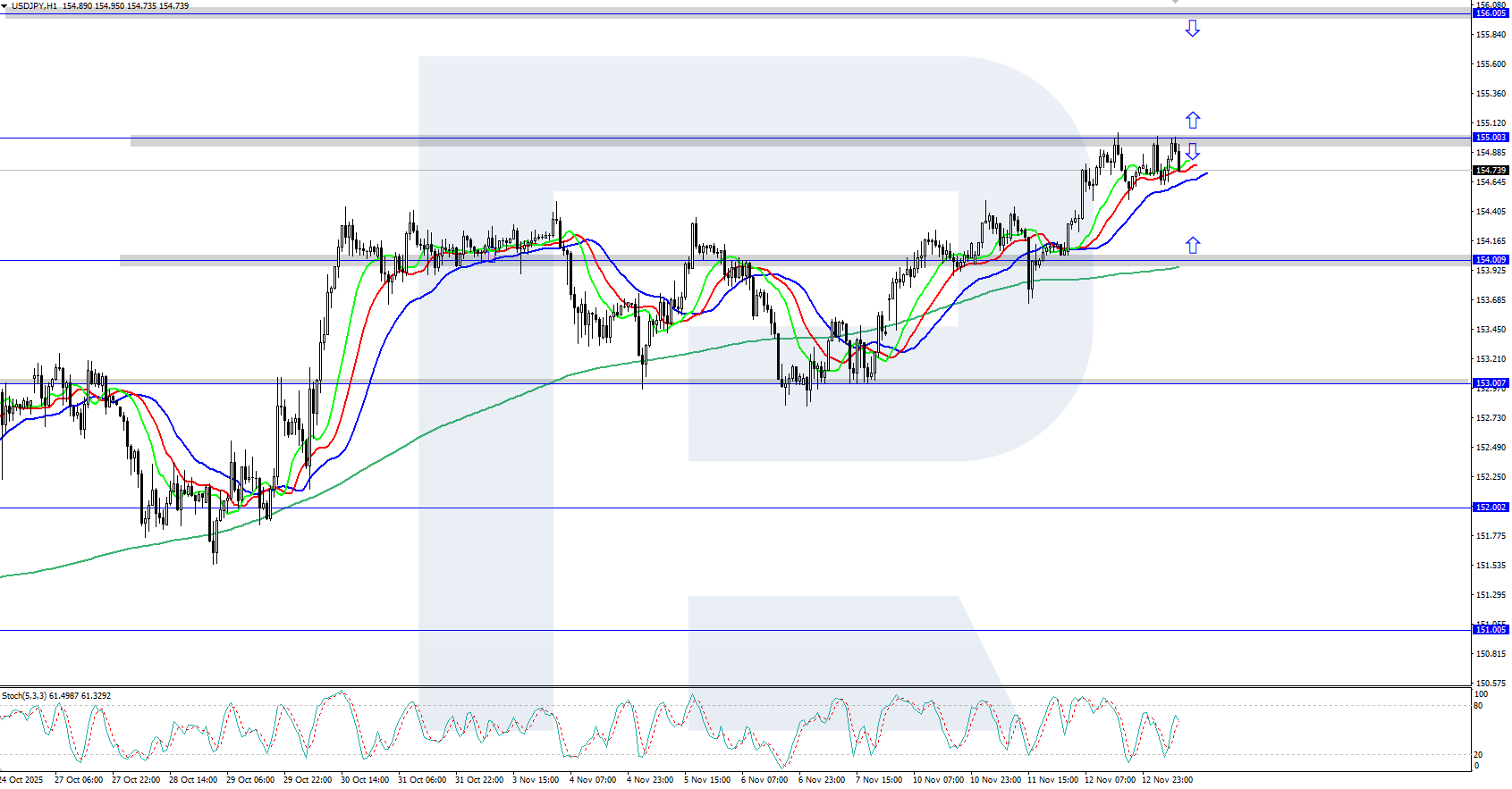 USDJPY бағамы АҚШ үкіметінің жұмысы қайта басталғаны және Жапония Банкі пайыздық мөлшерлемені көтеруге асықпай отырғаны аясында 155.00 аймағына дейін көтерілуін жалғастыруда. Толығырақ 2025 жылғы 13 қараша күнгі талдауымыздан оқыңыз.