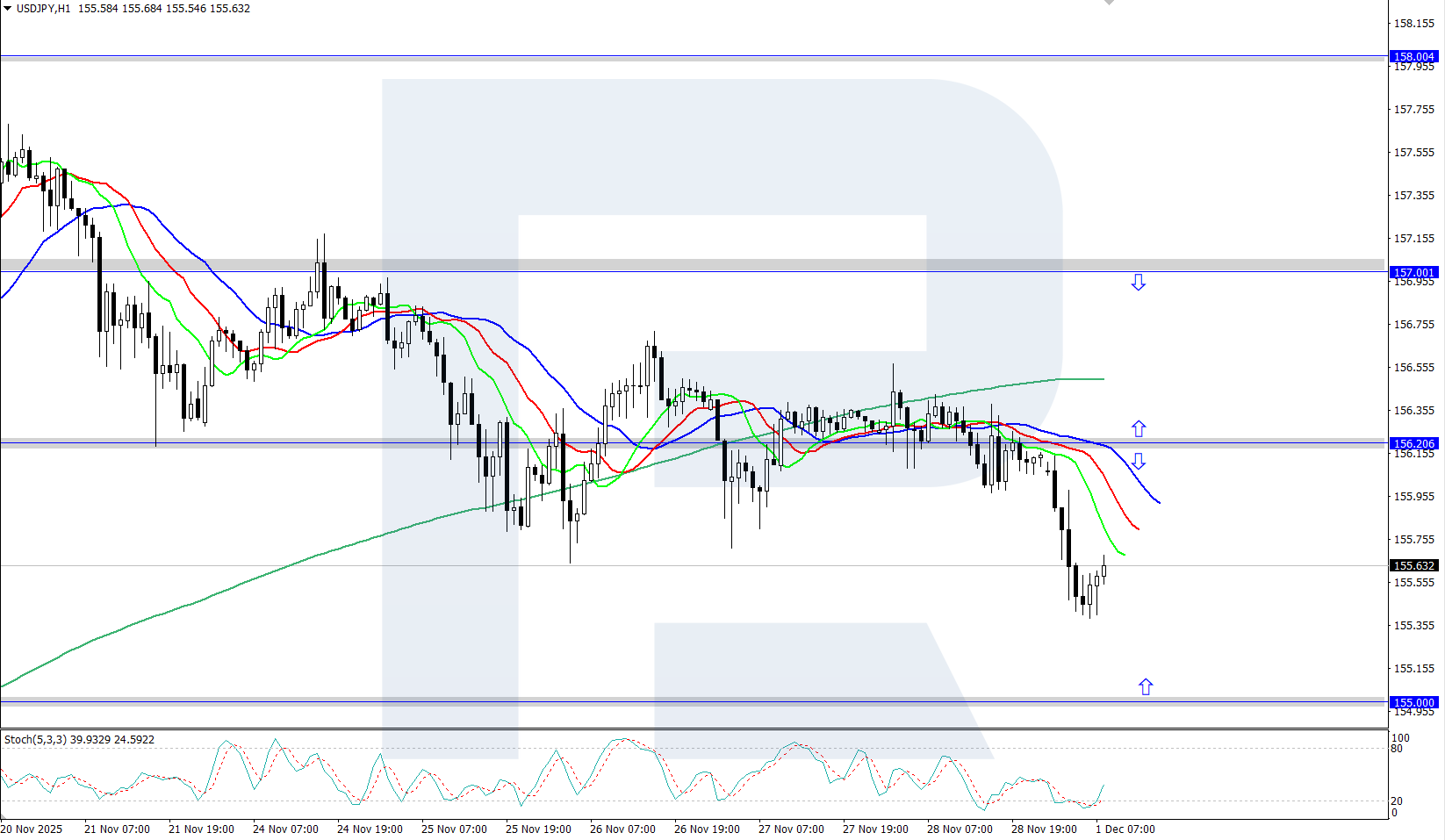 USDJPY айырбас бағамы қалыпты түрде төмендеп, 156.00 деңгейінен төмен түсті. Бұл Жапония Банкінің желтоқсан айындағы отырыста мөлшерлемені көтеруі мүмкін деген күтулер аясында болып отыр. Толығырақ 2025 жылғы 1 желтоқсан күнгі талдаудан біле аласыз.