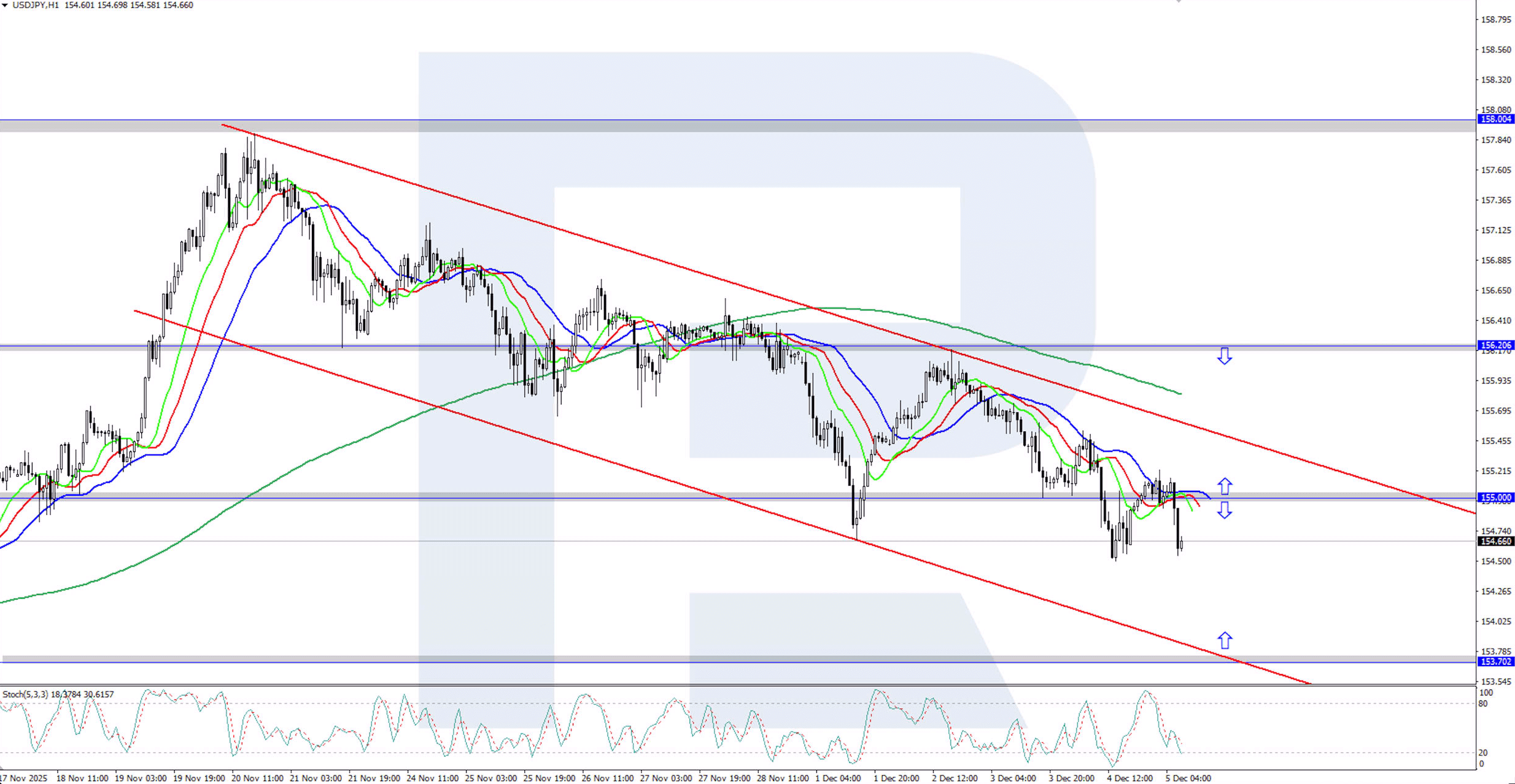 USDJPY жұбы 155.00 иеннен төмен түсті. Бұған Жапония Банкі осы айдың соңында пайыздық мөлшерлемені көтеруі мүмкін деген күтілімдер ықпал етті. БАҚ хабарлауынша, премьер-министр Санаэ Такаити үкіметінің негізгі мүшелері желтоқсанда мөлшерлемені көтеруге қарсы болмайды.