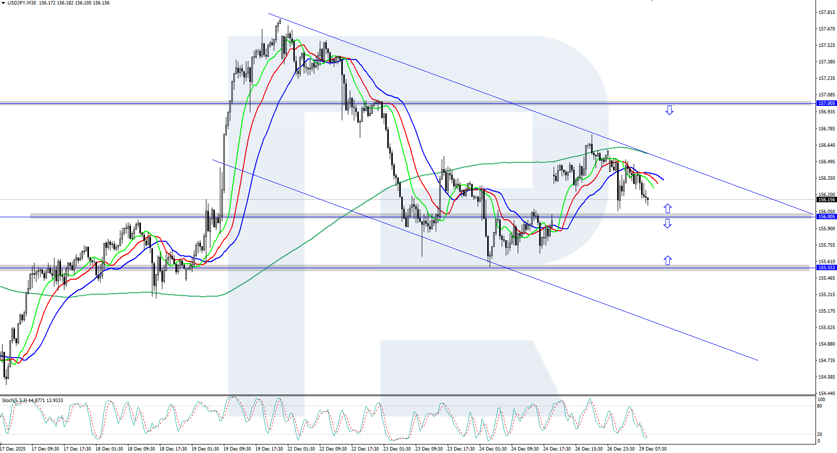 USDJPY төмендеуді жалғастырып, Жапония Банкі тарапынан ықтимал интервенциялар туралы алаңдаушылық аясында 156.00 аймағына сырғыды. Толығырақ — 2025 жылғы 29 желтоқсан күніне арналған талдауымызда.