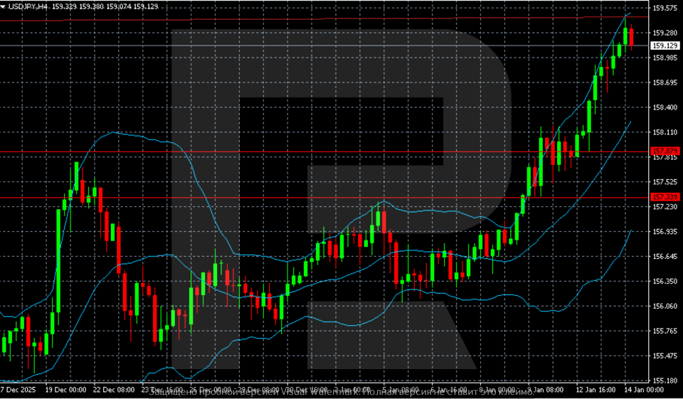 USDJPY жұбы 159.12 деңгейіне дейін көтерілді. Нарық жедел сайлаулардың ықтимал нәтижесіне қатысты белгісіздік жағдайында тұр. Толығырақ 2026 жылғы 14 қаңтар күнгі талдауымызда.