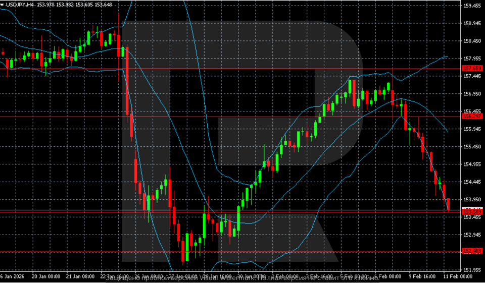 USDJPY жұбы Жапонияда бюджет шығындарының артуының ықпалына қатысты күтулер аясында күрт төмендеуде. 2026 жылғы 11 ақпанға арналған USDJPY болжамы 152.40 деңгейіне дейін төмендеуді жоққа шығармайды.