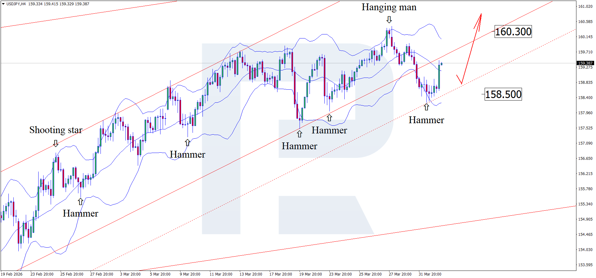 2026 жылғы 2 сәуірге арналған фундаменталды талдау USDJPY жұбы Вашингтоннан келген қарама-қайшы сигналдар аясында күрт құбылып, нағыз «американдық таулар» сценарийін көрсеткенін ескереді. Таңғы саудада бағалар Трамптың сөзіндегі қатаң риториканы бағалап, 159.00 деңгейінен жоғары көтеріліп, қазір 159.30 маңында саудалануда.