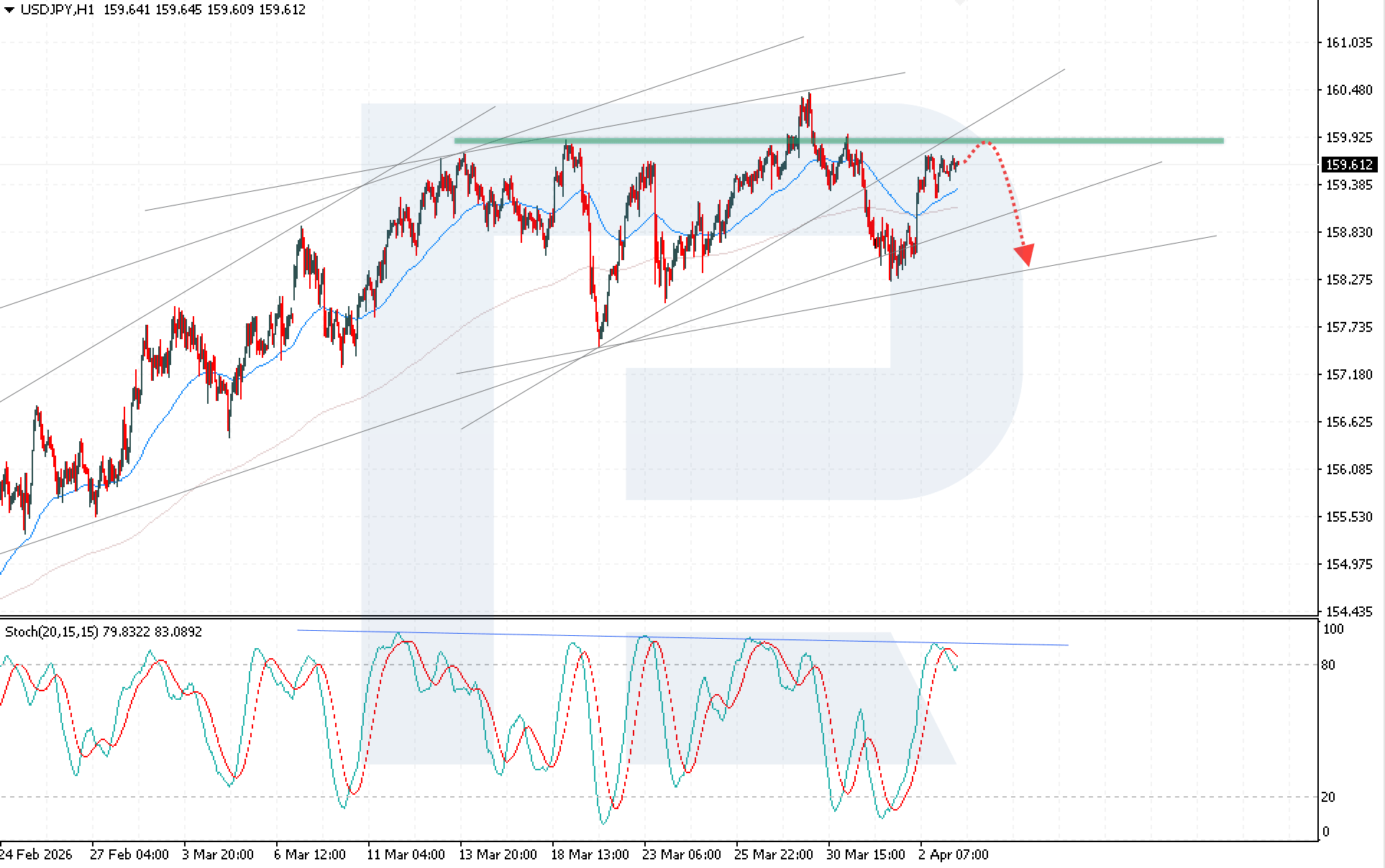 USDJPY жұбы монетарлық белгісіздік пен геосаяси тәуекелдер аясында иенаға қысымның күшеюіне байланысты өсу импульсін сақтауда. Қазіргі бағам 159.61 деңгейінде. 2026 жылғы 3 сәуір арналған талдауымыздан толығырақ біліңіз.