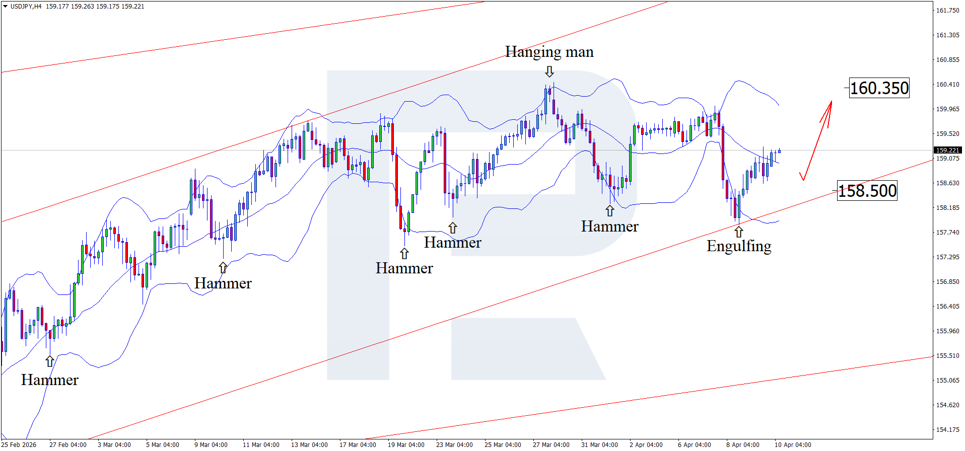 Иена бірнеше фактордың қысымында қалып отыр: геосаясат және интервенция қаупі. USDJPY котировкалары 159.20 белгісін сынауда. Толығырақ ақпаратты 2026 жылғы 10 сәуір арналған талдауымыздан біліңіз.