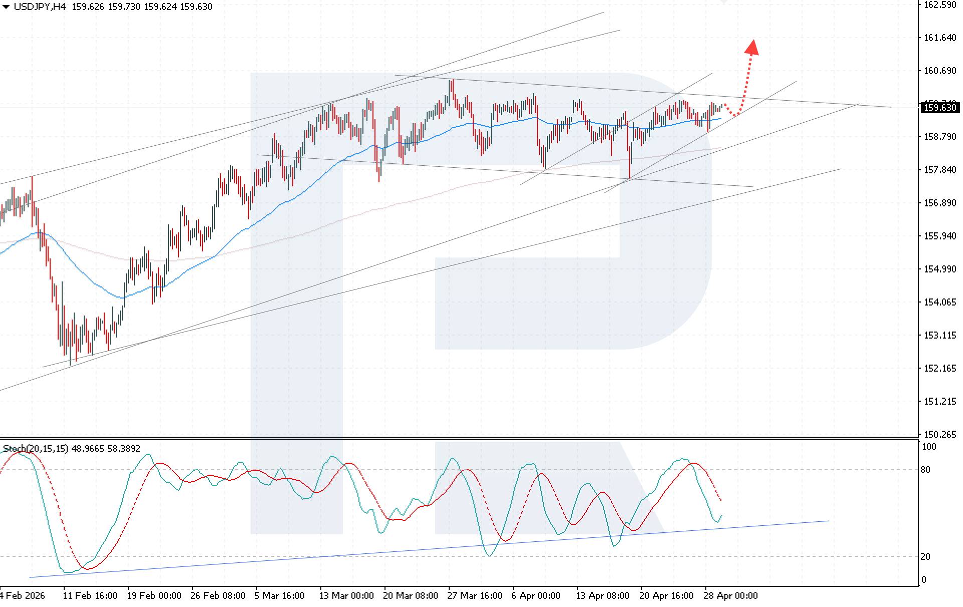 Геосаяси шиеленістің күшеюі және мұнай бағасының өсуі иенге қысымды арттырып, USDJPY бағамын негізгі деңгейлерге жақындатуда. Қазіргі деңгейі – 159.63. Толығырақ 2026 жылғы 29 сәуір арналған талдауымыздан біліңіз.