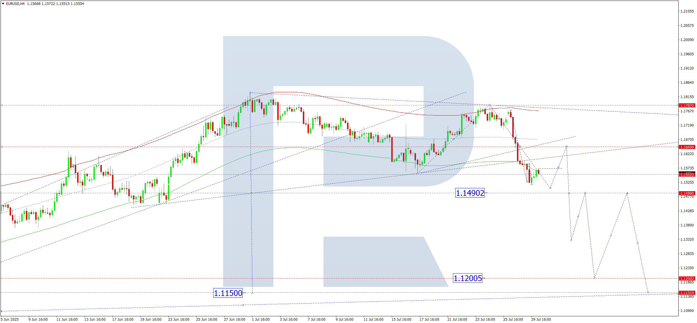 Бүгінгі EURUSD болжамы бойынша техникалық индикаторлар 1.1490 деңгейіне дейін төмендеу толқынының жалғасуын көрсетеді.