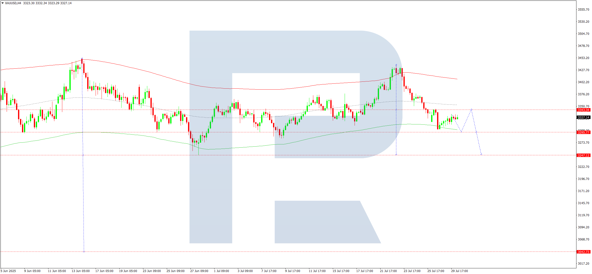 Бүгінгі XAUUSD болжамы бойынша техникалық индикаторлар 3,247 деңгейіне дейін төмендеу толқынының жалғасуын көрсетеді.