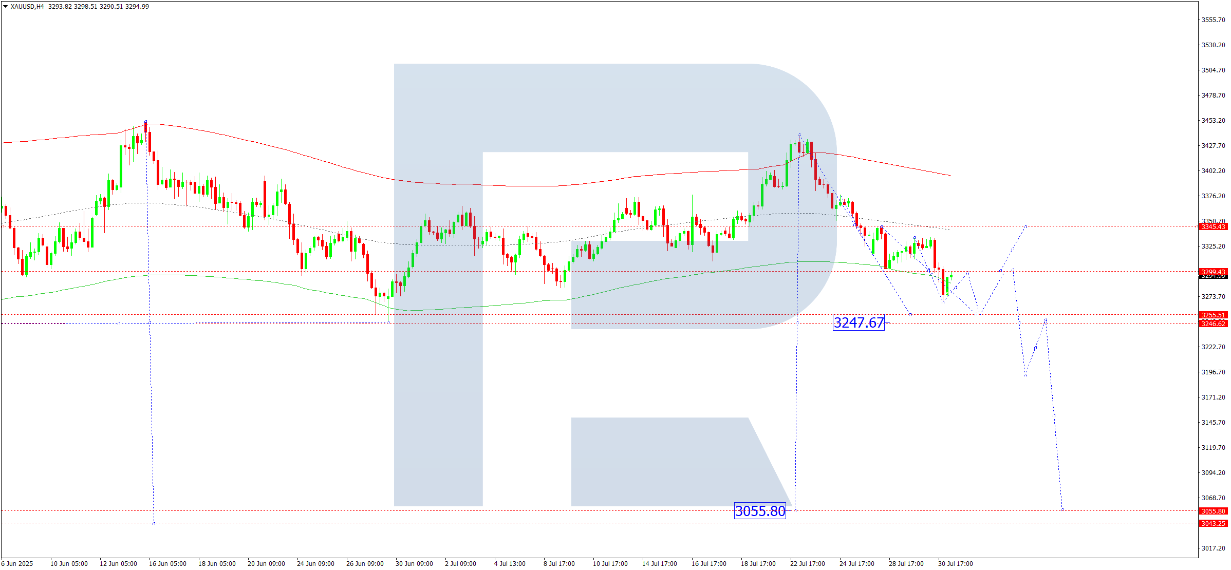 XAUUSD жұбының H4 графигінде нарық 3,290 деңгейі маңында консолидация диапазонын құруда. Бұл диапазон төменге қарай 3,268 деңгейіне дейін кеңейді. Бүгін, 2025 жылғы 31 шілдеде, 3,300 деңгейіне дейін көтерілу ықтимал, кейін 3,256 деңгейіне дейін төмендеу орын алуы мүмкін.